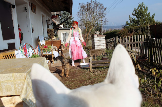 Ženství je jen maškaráda. Stručný slogan charakterizující tvorbu Ladis Pachmuch, původně však vychází z parafráze ústřední myšlenky textu Joan Riviere z roku 1929. Podle této psychoanalytičky ženství samo o sobě vůbec neexistuje, jedná se jen o genderovou hru, ne o inherentní vlastnost. Později její texty inspirovaly další teoretičky, jež se zabývaly vztahem ženství a mužství a procesy jejich sociální konstrukce. Podle Mary Ann Doane maska přehnané feminity, kterou na sebe žena bere a do které se obléká, jí pomáhá skrýt se před maskulinním světem a jeho touhou po vlastnictví. Existuje pak několik strategií, jež umožňují ženě ubránit se mužskému pohledu, jež ji objektivizuje a fetišizuje, aby se zbavil strachu z toho, že by přišel o svou dominantní pozici. Ladis Pachmuch ve své tvorbě tyto strategie zkoumá. Jednou z nich je excesivně provedené ženství – maškaráda. Ladis si obléká latexové masky, expresivně erotické převleky, korzety, vysoké podpatky a péřové doplňky. Fotí se tak v pros...